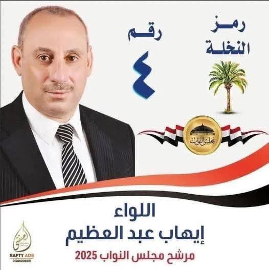مع اقتراب الماراثون الانتخابي، برز اسم اللواء إيهاب عبد العظيم جابر (المرشح رقم 4 - رمز النخلة) كأحد أقوى الوجوه الانتخابية اعتماداً على تاريخه الطويل في العمل البرلماني والخدمي، ومسيرته التي جمعت بين الحزم الأمني والتفوق الرياضي والنشاط التشريعي المكثف.