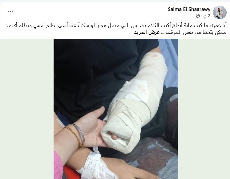 وأشارت سلمى إلى أنه عقب وصول والدتها للمستشفى ومحاولتها تحرير محضر بالواقعة، تعرضت لضغوط من فرد الأمن لعدم اتخاذ أي إجراء قانوني، بدعوى أن ذلك سيؤدي إلى “مشكلات كبيرة”.