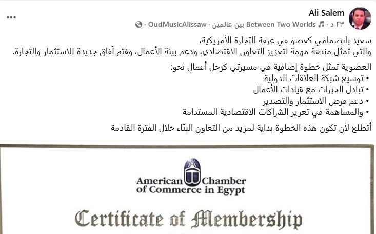 «خطوة جديدة نحو العالمية».. رجل الأعمال علي سالم ينضم لعضوية غرفة التجارة الأمريكية